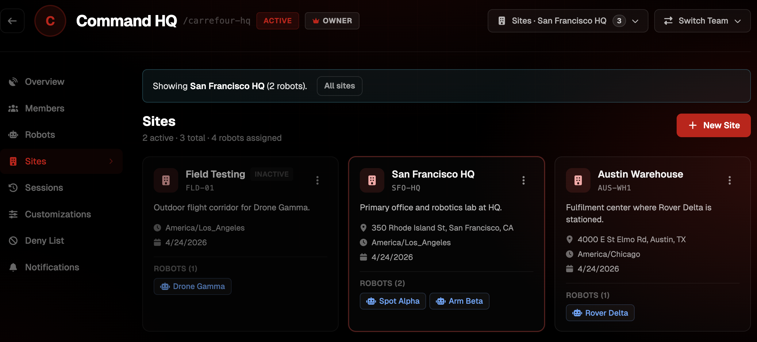 Easily add new robots, deployments, and team members as your organization grows, while keeping operations consistent, safe, and manageable over time.
